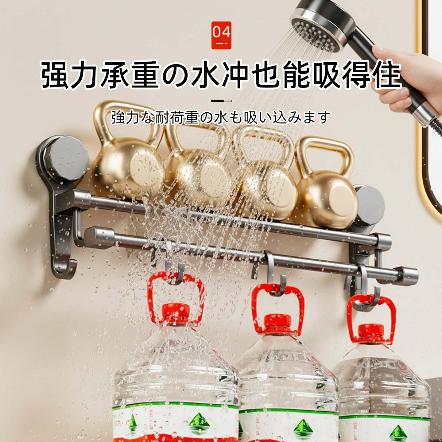 日本吸盘毛巾架卫生间免打孔浴室洗手间浴巾收纳挂架伸缩杆置物架