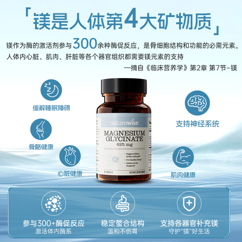 Naturewise双甘氨酸镁补剂镁元 素补充剂补镁胶囊女士成人非片粉