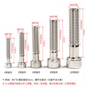304不锈钢内六角螺丝杯头螺栓圆柱头螺钉平头加长M2M3M4M5M6M8M10