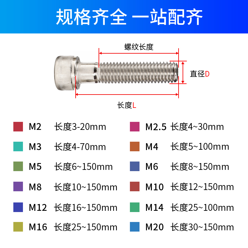 304不锈钢内六角螺丝圆柱头杯头螺栓加长螺杆螺钉M2M3M4M5M24东明