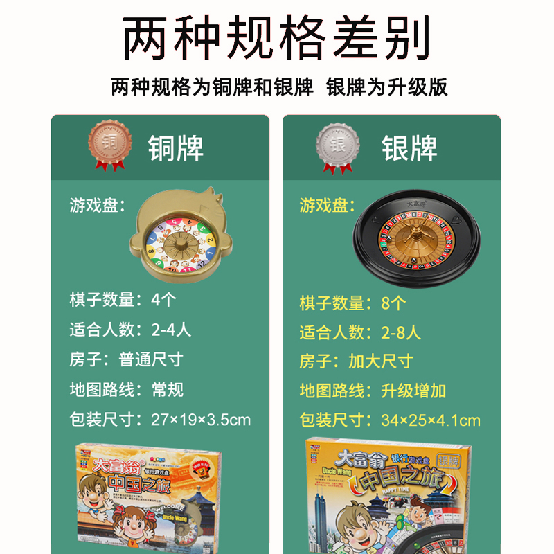 大富翁世界之旅桌游中国之旅银牌桌面游戏送骰子银行游戏棋强手棋