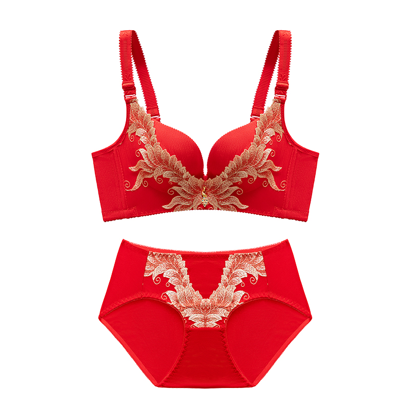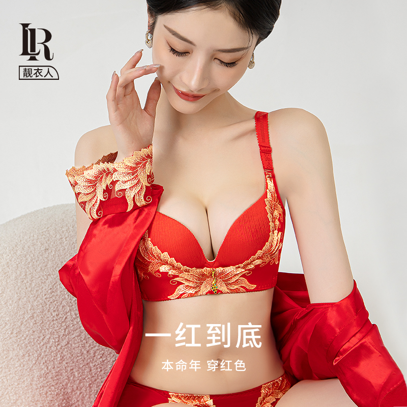 女刺绣大红本命年文胸 套装 Liang靓 红色内衣结婚新娘女士内衣内裤