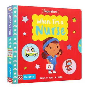 硬纸板机关操作书亲子互动 When Nurse 英文原版 早教益智 进口英语原版 英文版 书籍儿童全英语书 推拉抽拉书 当我是护士