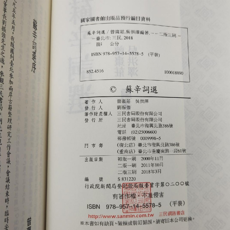 吴洪泽编著 蘇辛詞選 二版 现货 锁线胶订 曾枣庄 16开 台湾三民版