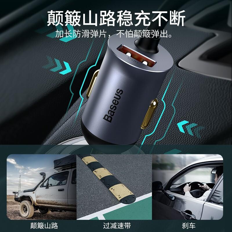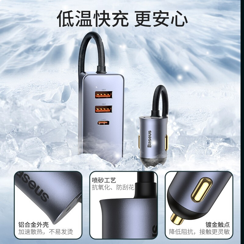 倍思车载充电器超级快充2025新款 一拖二汽车点烟器转换插头车充PD