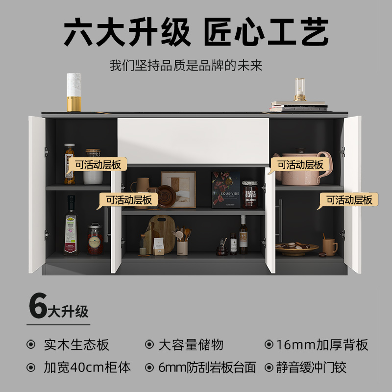 轻奢岩板餐边柜现代简约客厅靠墙茶水柜实木柜子储物柜厨房置物柜