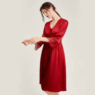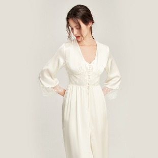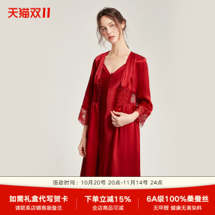 法式 吊带睡衣女桑蚕丝两件套 新娘晨袍性感真丝高级感结婚睡袍新款