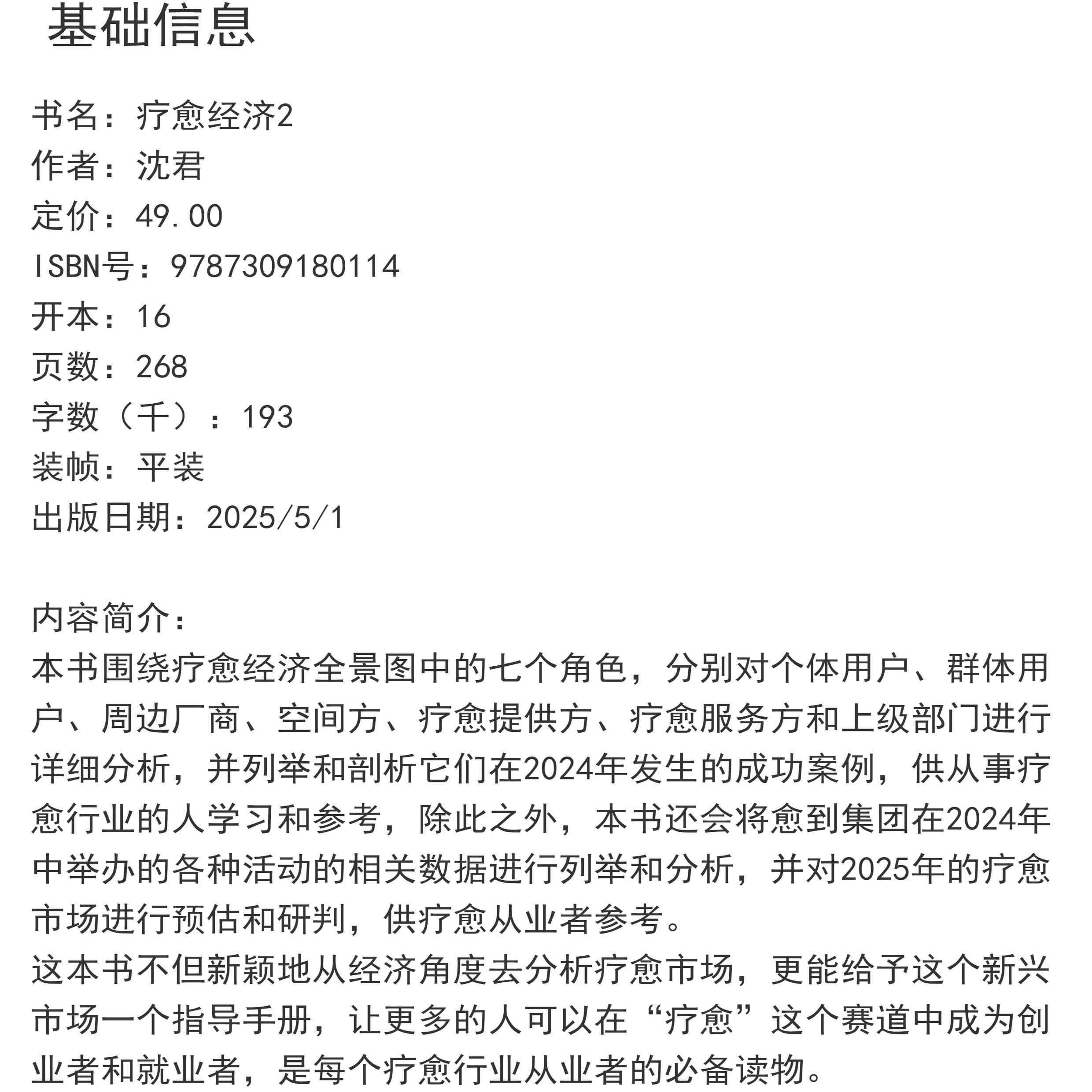 商品标签:沈君著疗愈经济2