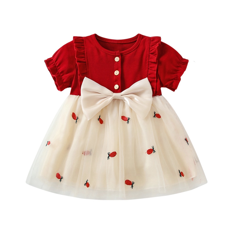 女宝满月夏装 连衣裙周岁2025短袖 礼服女童红色公主裙 夏季 婴儿新款