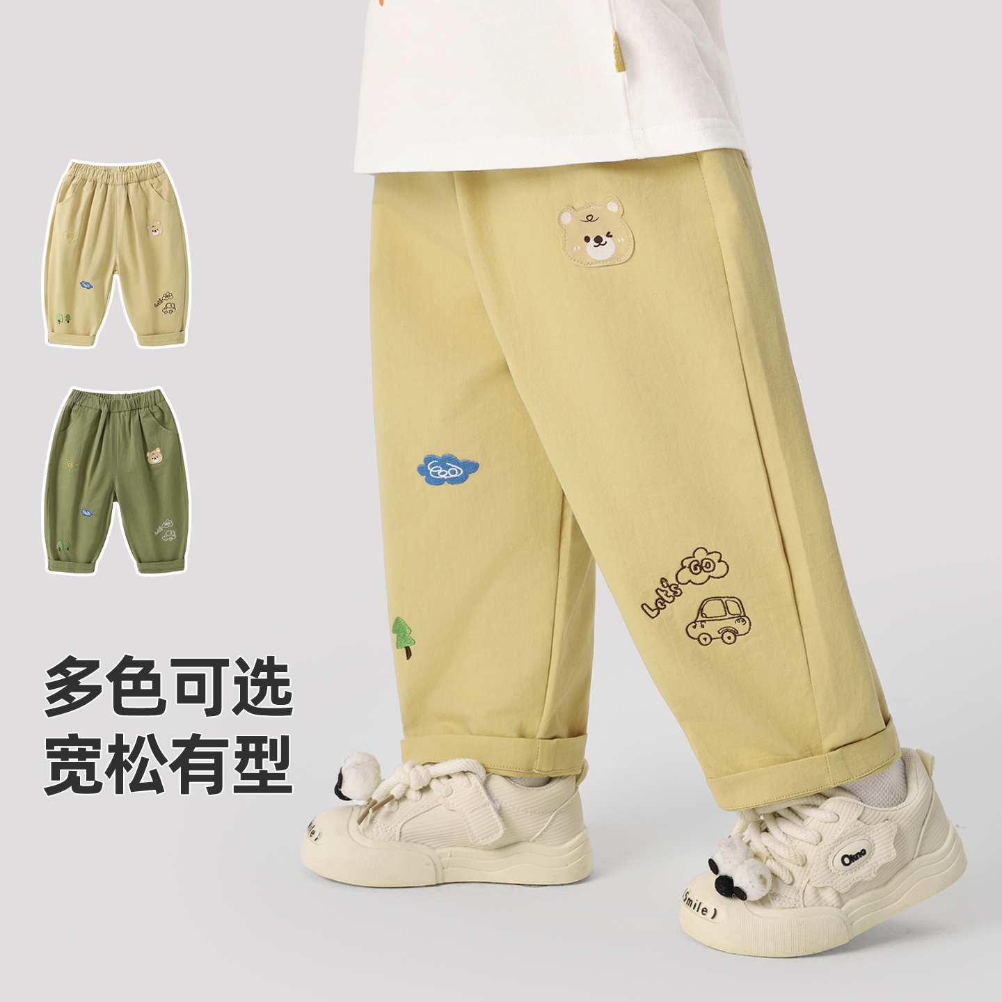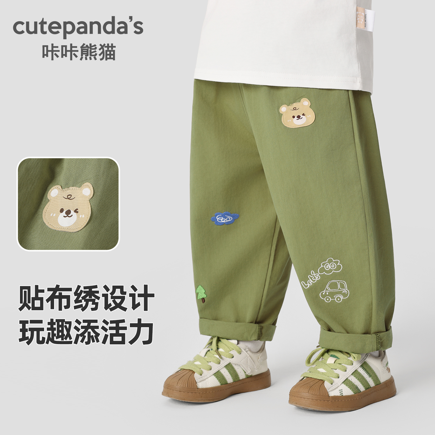 秋装 童装 男童韩版 秋裤 春秋潮 简约长裤 咔咔熊猫宝宝卡通休闲梭织裤