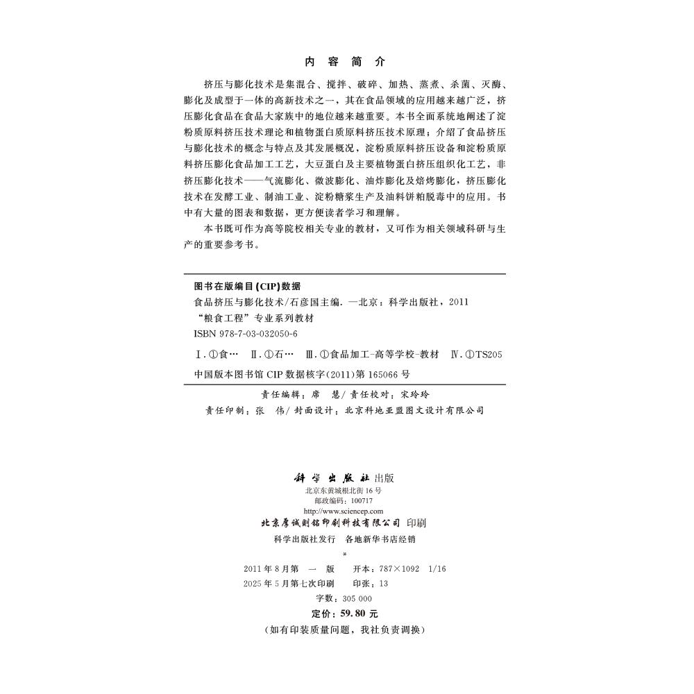 石彦国 主编 化学工程 现货正版 化学化工 粮食工程专业系列规划教材 食品挤压与膨化技术 社 科学出版