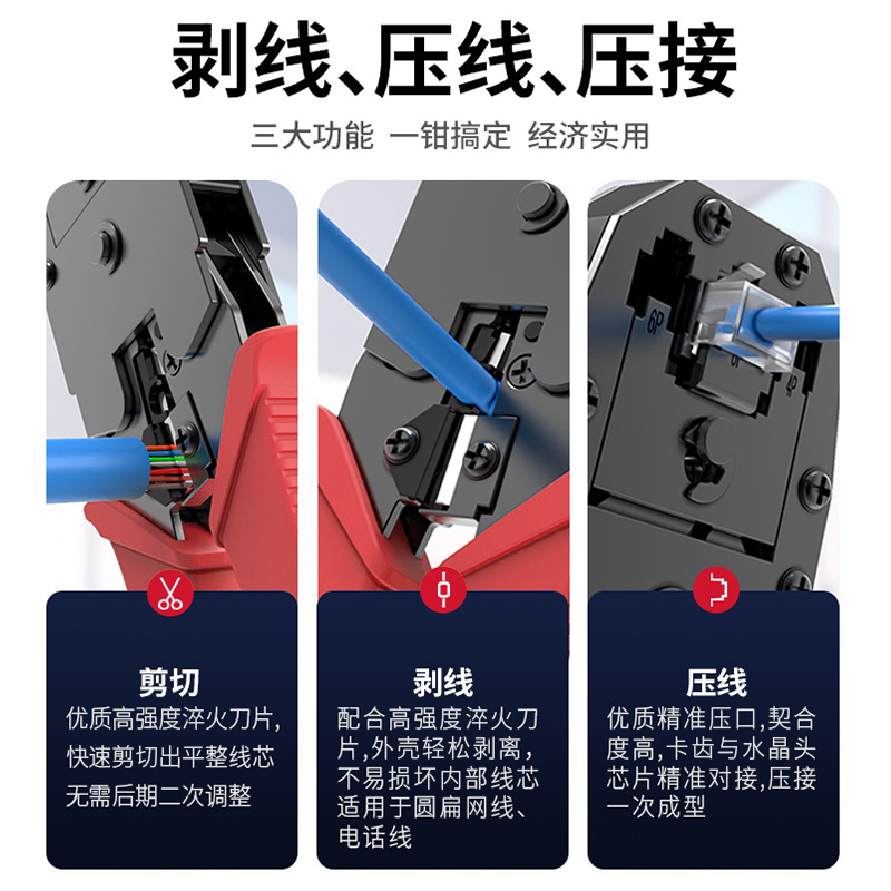 潇潇网线钳子水晶头压线专业级测试仪工具套装 电工六类多功能钳子
