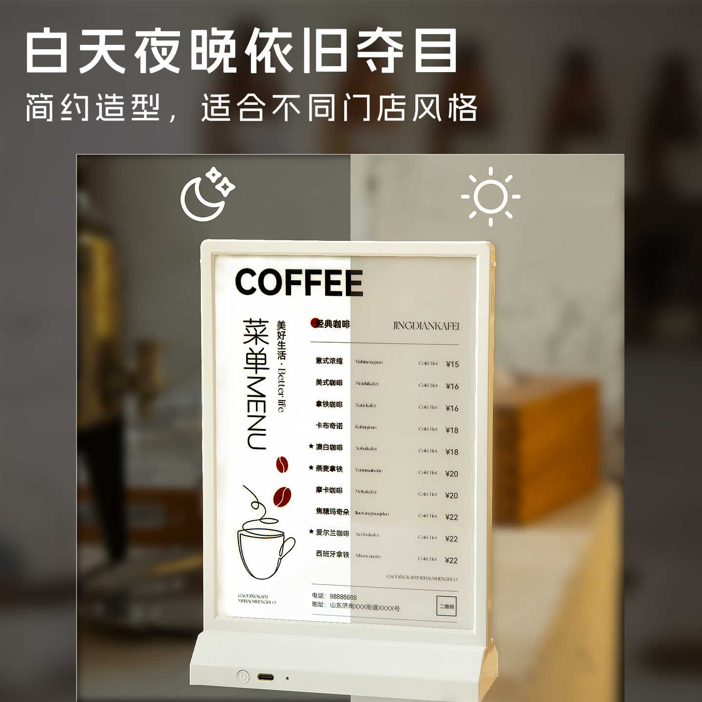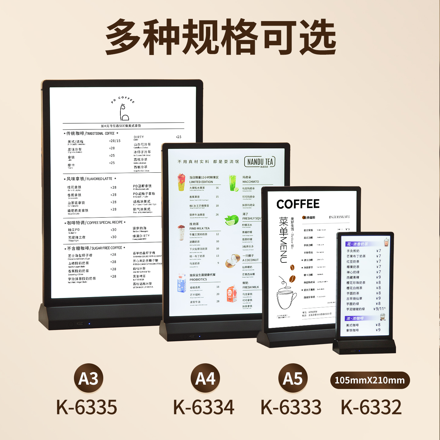 发光桌牌立牌定制菜单价目表咖啡奶茶店餐厅酒吧高档A4酒水牌双面LED灯箱桌面台卡广告展示牌设计制作价格表