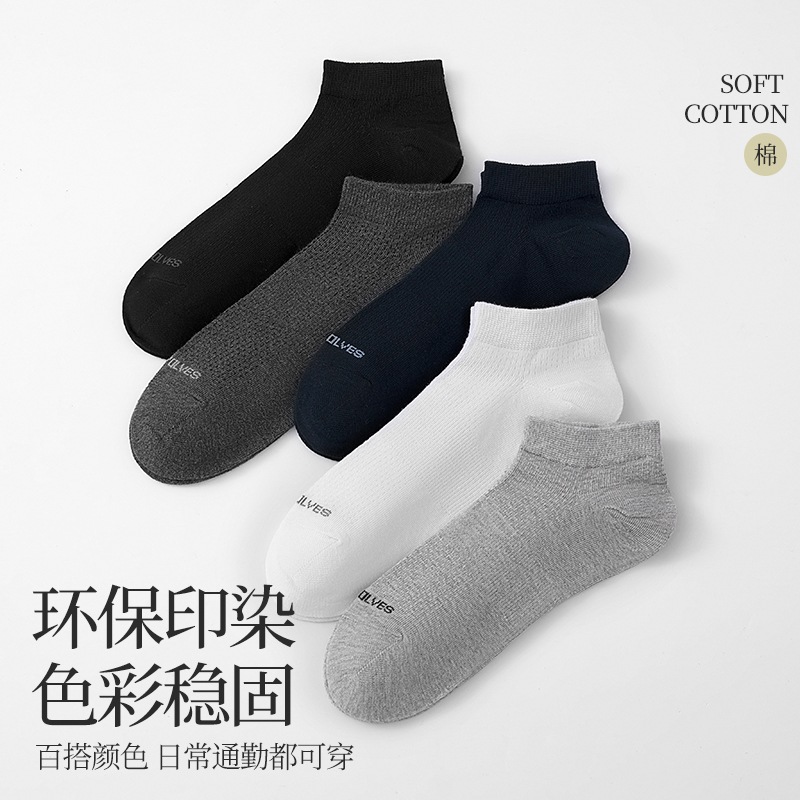 船袜 纯棉夏天短袜男士 雅鹿袜子男中筒防臭吸汗抗菌夏季 长袜薄款