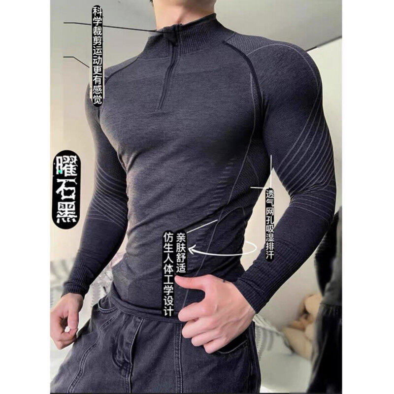 跑步运动训练服修身 秋季 弹力健身衣 硬汉风显肌肉速干t恤男款 美式