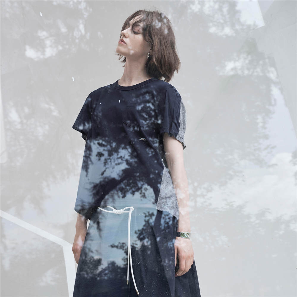 拼接波点提花圆领花边短袖 新款 T恤女18325612 佐丹奴夏季 设计师款