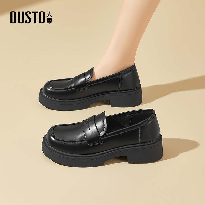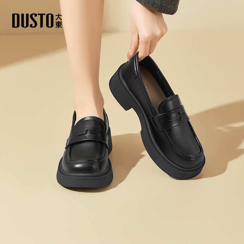 女2025新款 单鞋 秋季 英伦风小皮鞋 通勤黑色女鞋 大东官方厚底乐福鞋