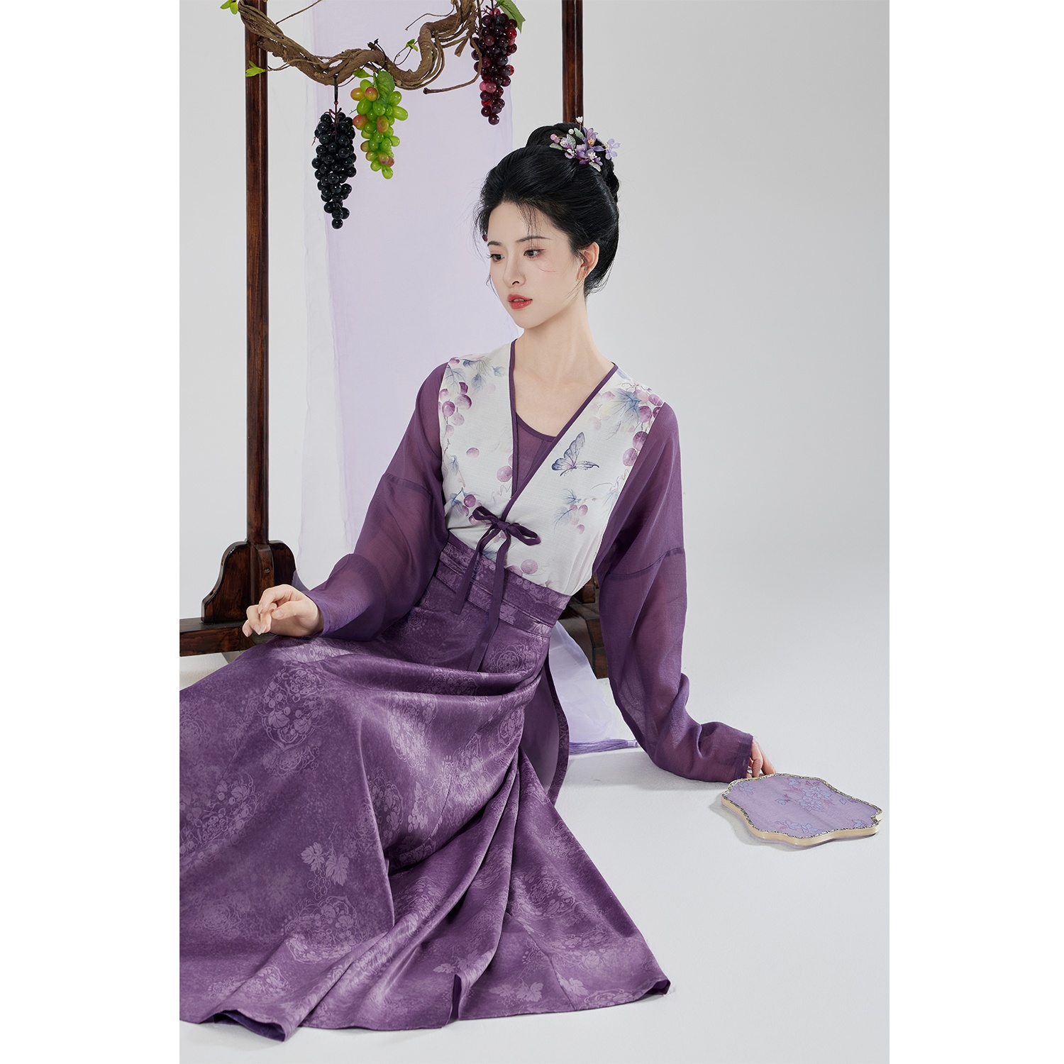 一片式 原创唐制汉服唐褙子莱赛尔圆领衫 八破长裙 紫芋葡萄 织造司