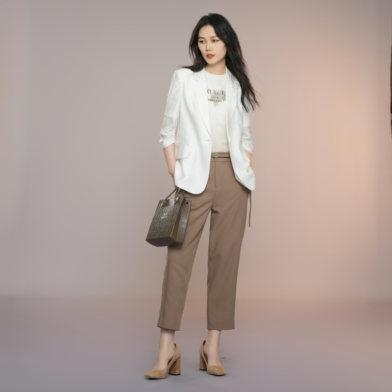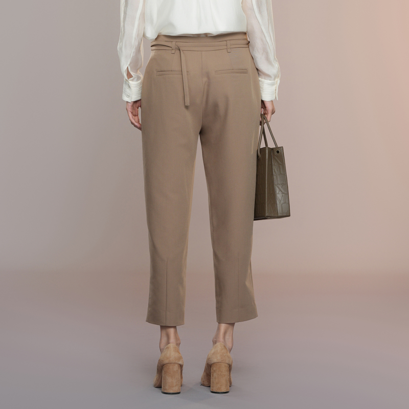 复古通勤简约九分锥形裤 XG雪歌腰带装 新款 2025秋季 女 饰咖色休闲裤