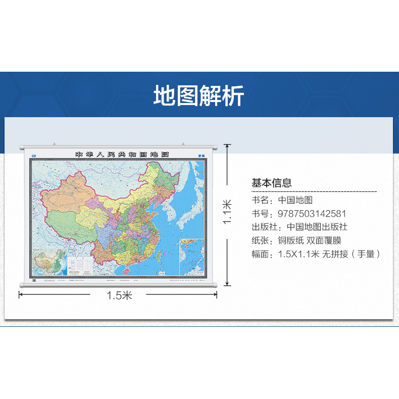 广东山东河北安徽湖北甘肃河南浙江省办公室会议室教室装 超大无拼接约1.5×1.1m 饰画 中国世界地图精美挂图 2025新版