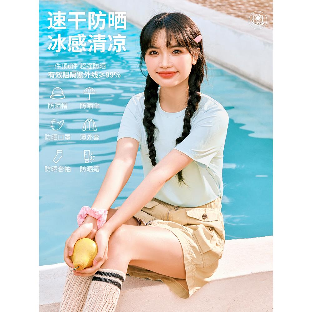 大码 夏季 胖mm上衣运动透气防晒衣体恤A t恤女2025新款 回力冰丝短袖