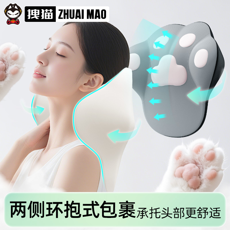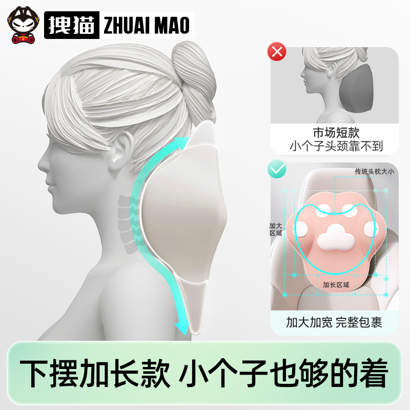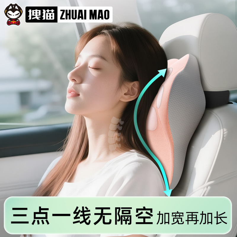 萌萌喵护颈枕汽车头枕车用靠枕女生开车座椅可爱车载脖枕腰靠套装