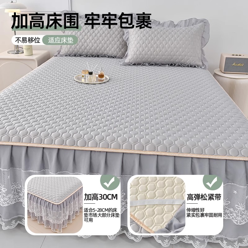 公主风冰丝乳胶凉席床裙款 一体床笠罩夏天三件套蕾丝花边2025新款