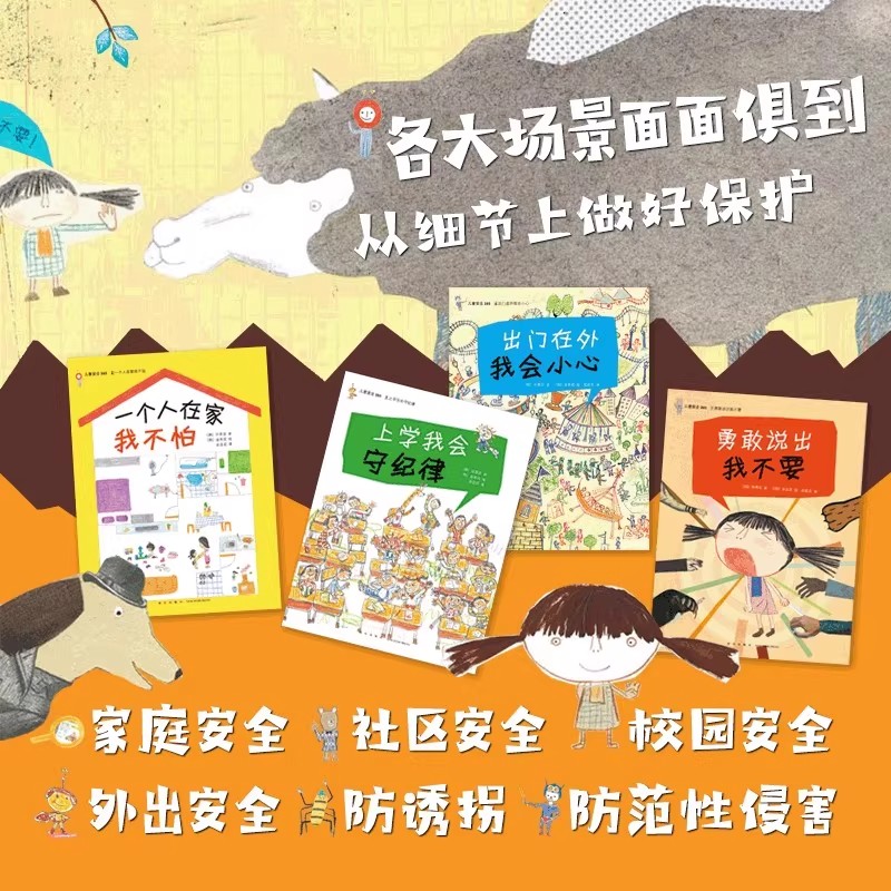 全4册 128条安全知识大百科 家庭社区校园外出防诱拐 8岁儿童安全手册幼儿园儿童故事绘本图画书 教会孩子如何自救 儿童安全365
