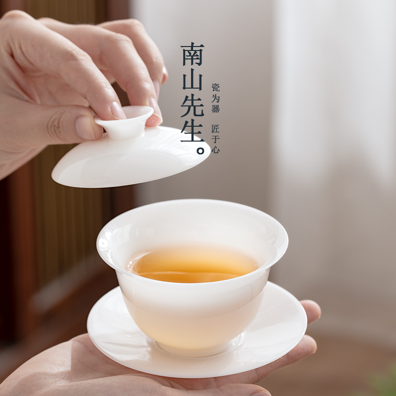 南山先生 瑶光三才盖碗冰种玉瓷夫茶具泡茶碗单个防烫大号泡茶器