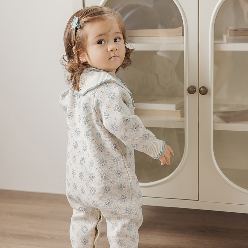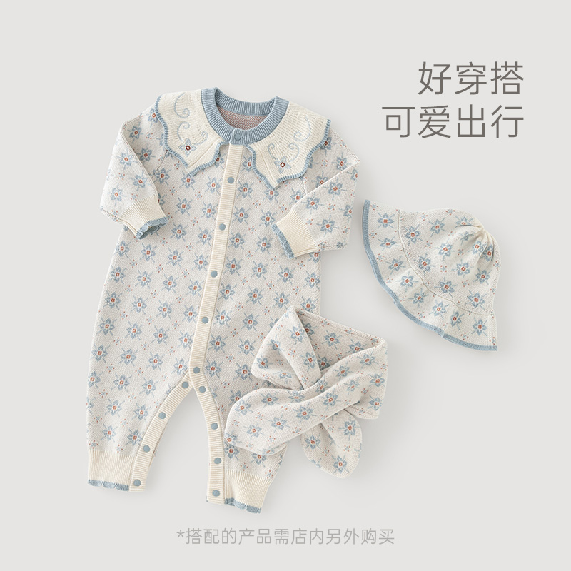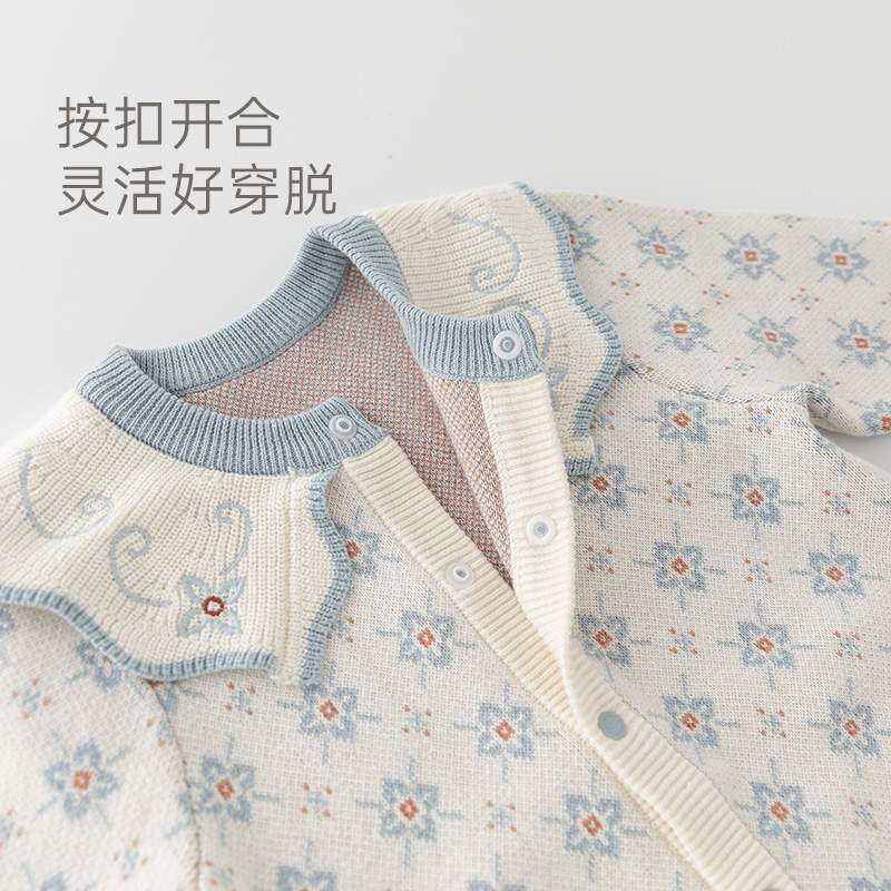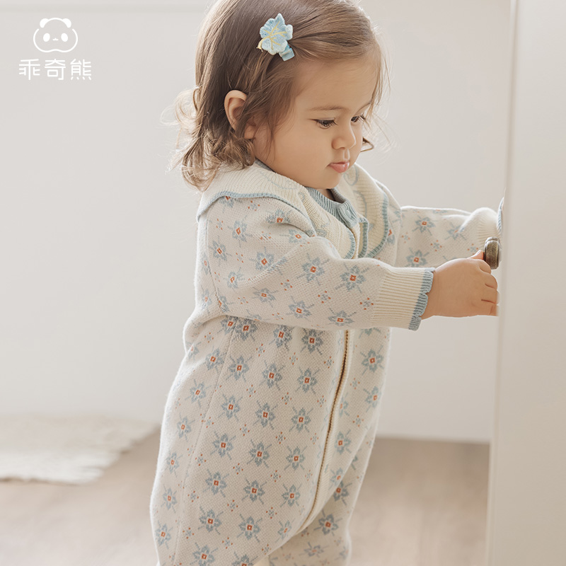 乖奇熊女宝宝连体衣纯棉针织衫 保暖婴幼儿公主毛衣哈衣爬服 秋冬季