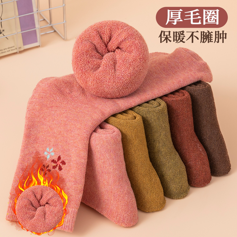 棕咖色月子长袜 乐福鞋 木耳边堆堆袜子女秋冬季 纯棉中筒袜配小皮鞋