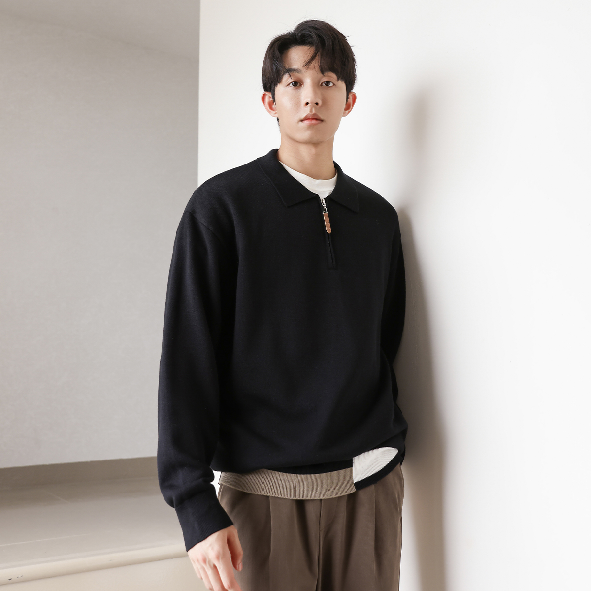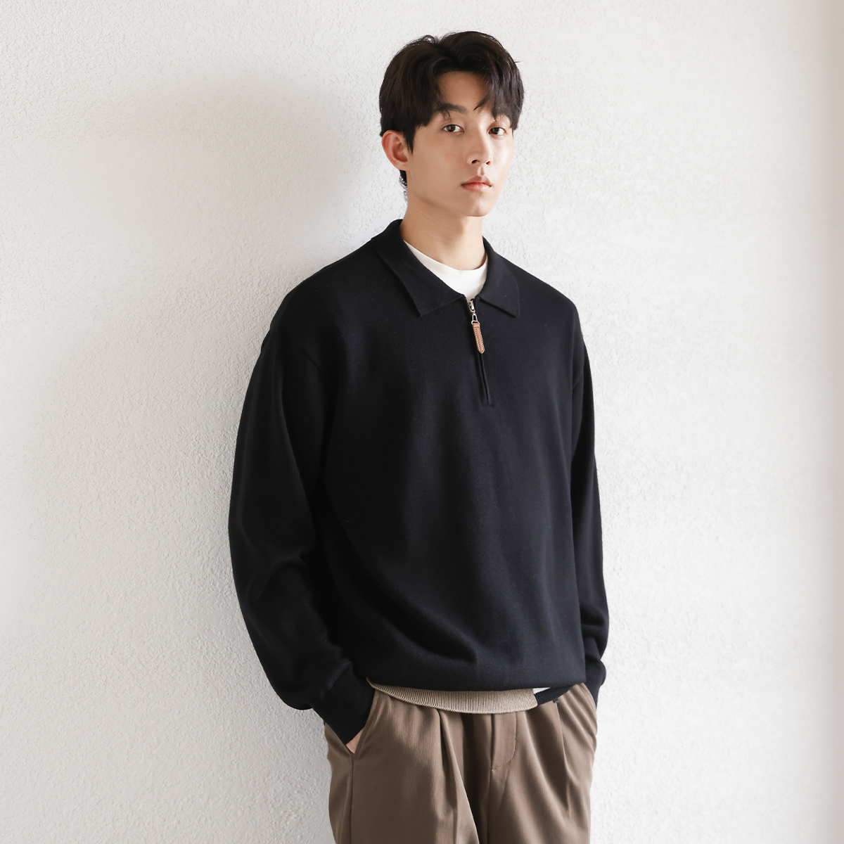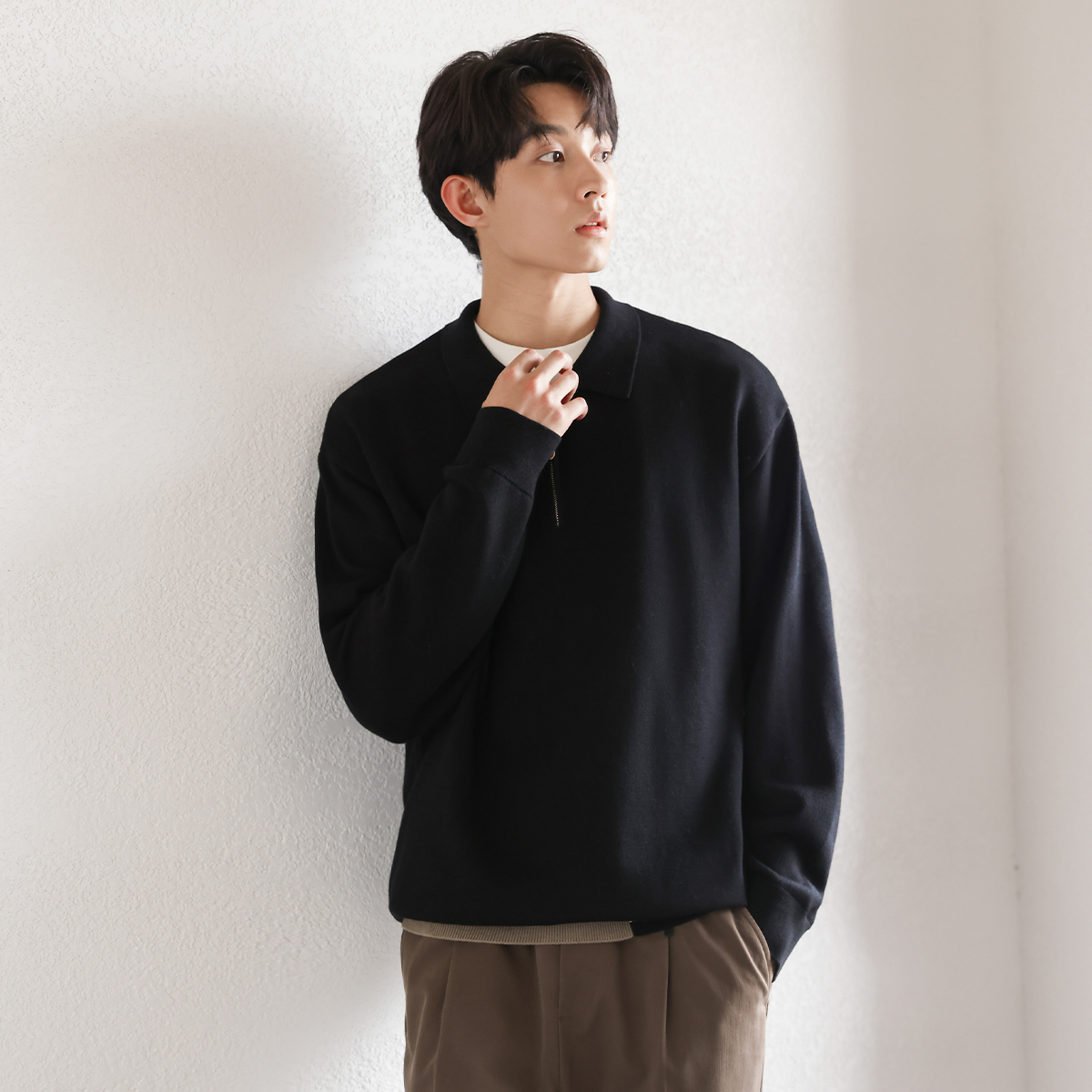 男士 毛线针织衫 内搭打底线衣A 薄款 班尼路S&K灰色毛衣男圆领秋季