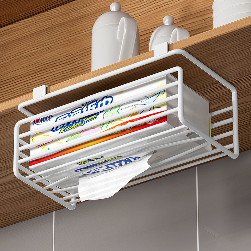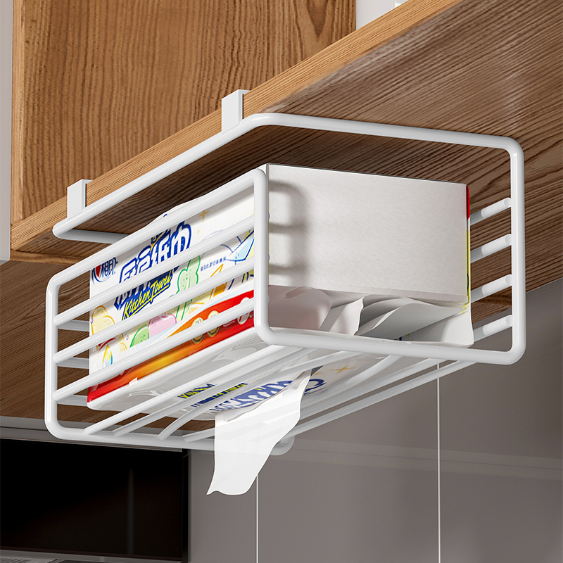 厨房纸巾架免打孔橱柜悬挂置物多功能湿巾卷纸收纳桌下抽纸盒神器