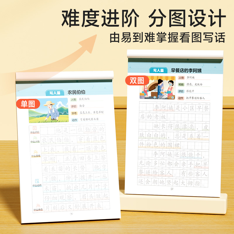 时光学看图写话练字帖描景状物记事篇一二年级字帖上下册小学生专用练字每日一练同步语文作文范文练习册硬笔书法临摹描红练字本