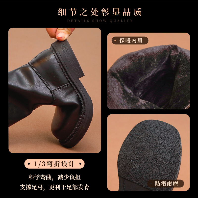 二棉鞋 女孩加绒保暖长筒宝宝时尚 冬季 儿童高筒靴女童靴子2025新款