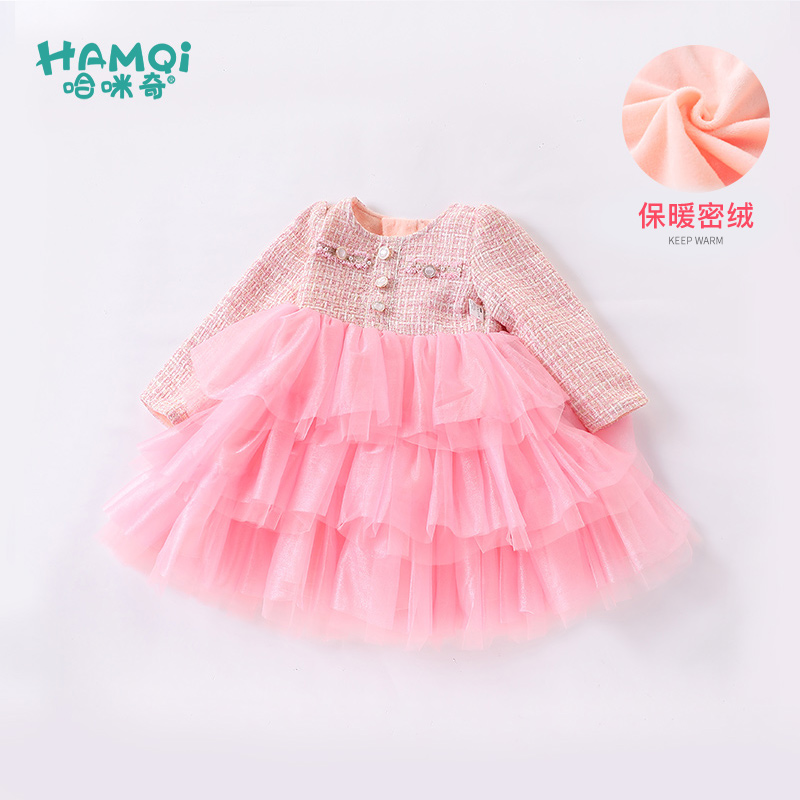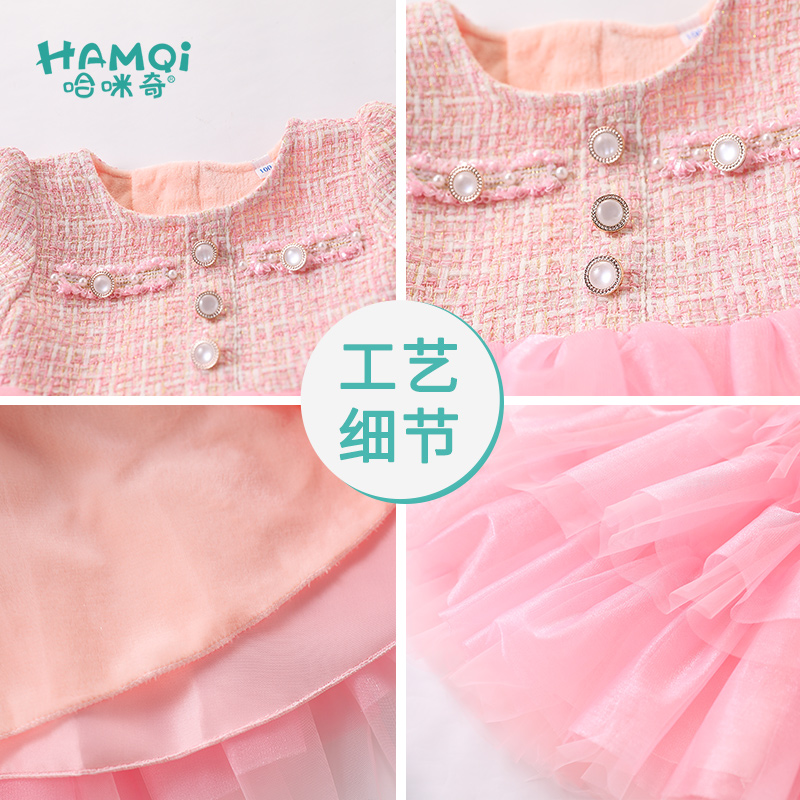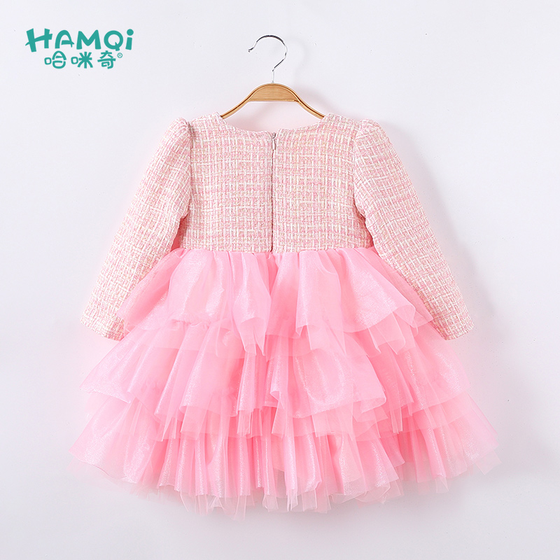 设计感小众收腰甜美拼接裙子 连衣裙女秋季 法式 富家千金风粉色长袖