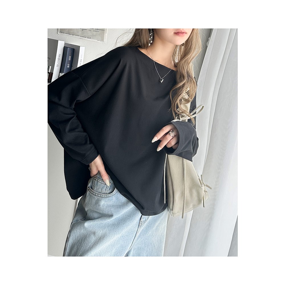 修身 打底衫 百搭上衣服 T恤女春秋内搭短款 设计感小众正肩纯棉长袖