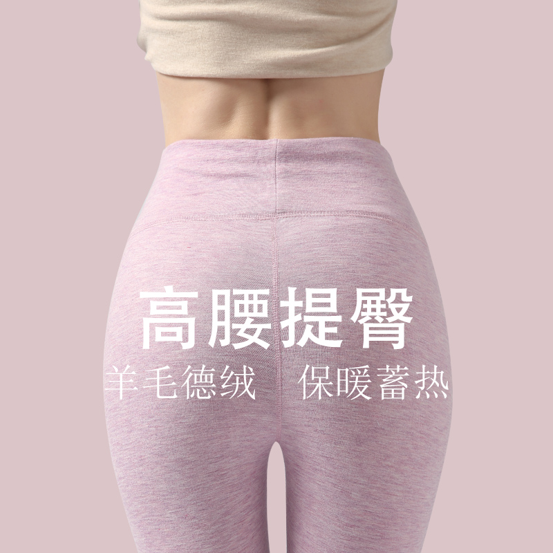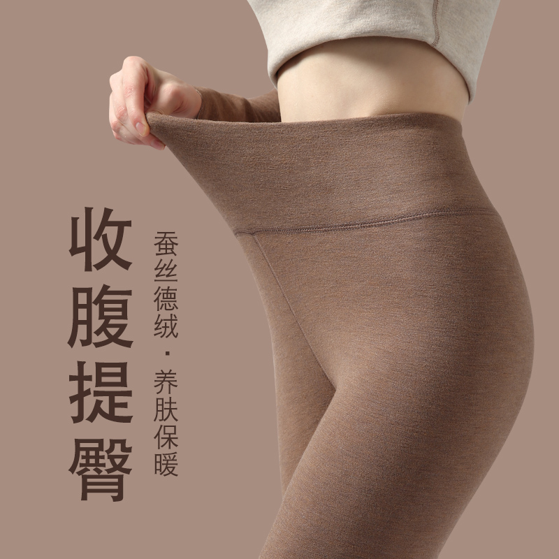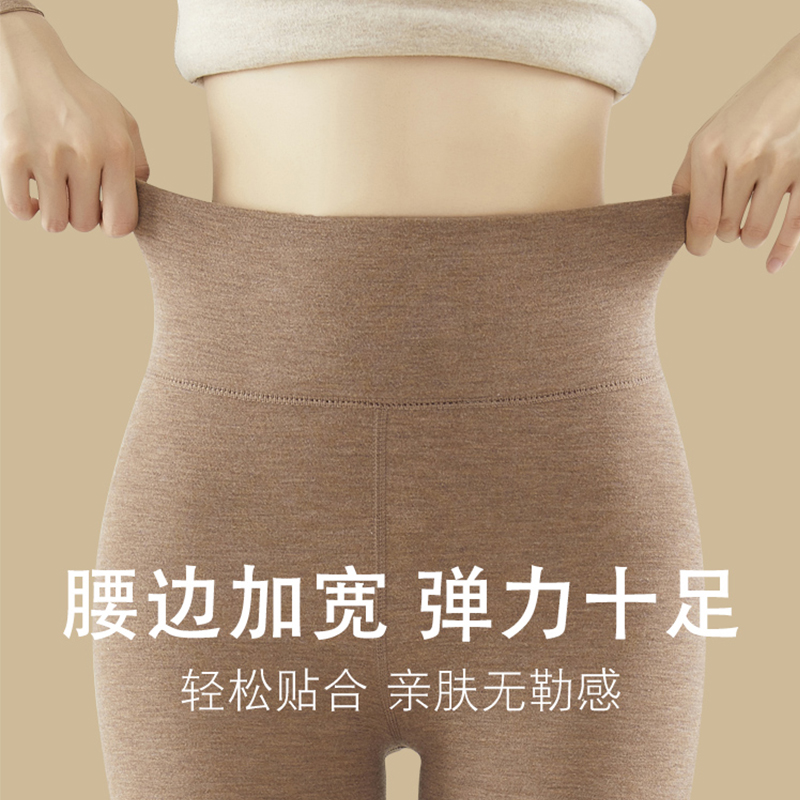 内穿无痕加厚打底裤 保暖裤 女羊毛蚕丝发热秋冬款 浪莎高腰德绒秋裤