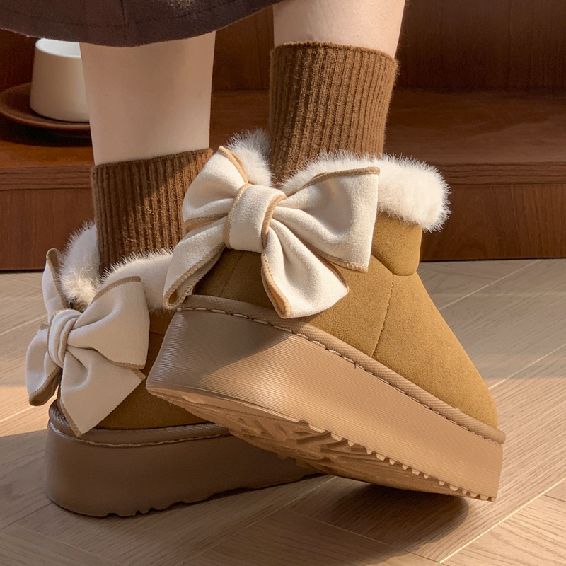百搭居家棉拖鞋 外穿包跟棉鞋 时尚 可爱蝴蝶结雪地靴女加绒保暖冬季