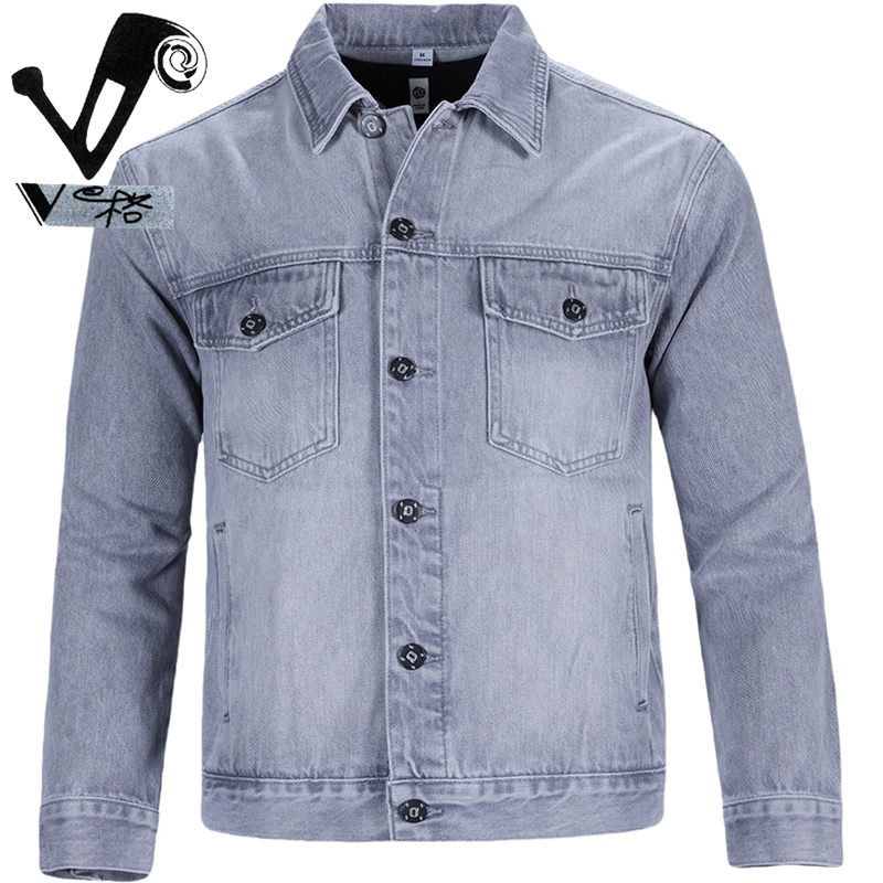 牛仔衣 工装 高级感防褪色原色水洗牛仔外套男宽松大码 翻领夹克新款