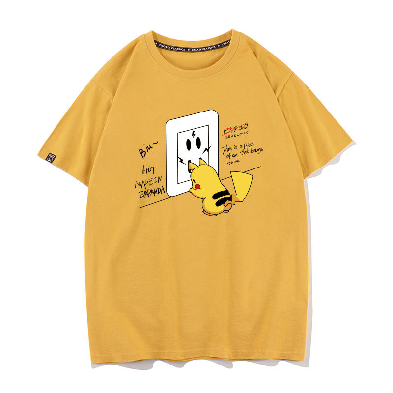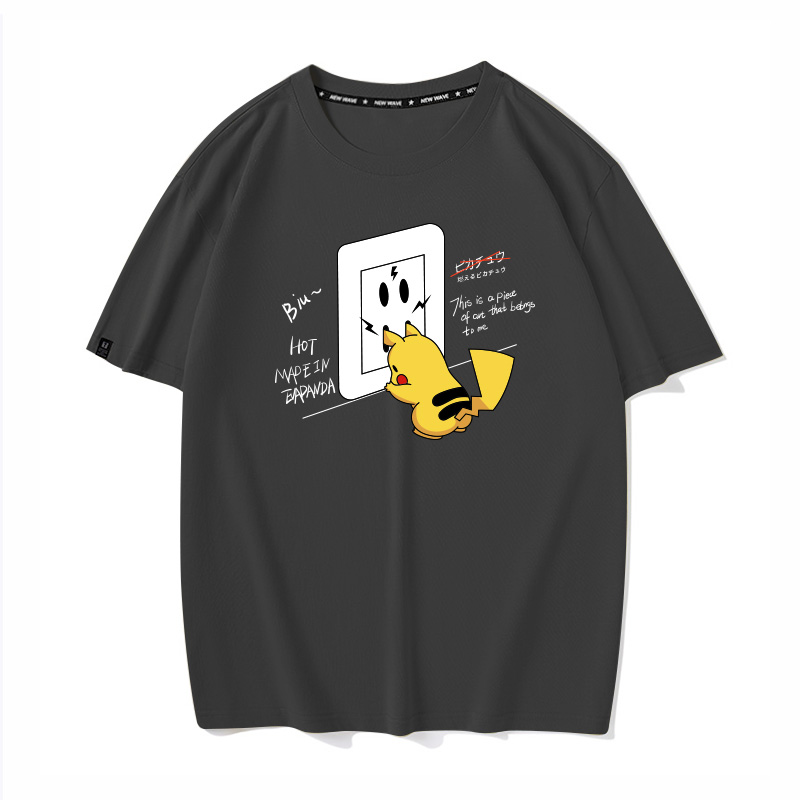打底衫 卡通动漫皮卡丘纯棉宽松圆领夏季 衣服半袖 T恤男情侣装 短袖
