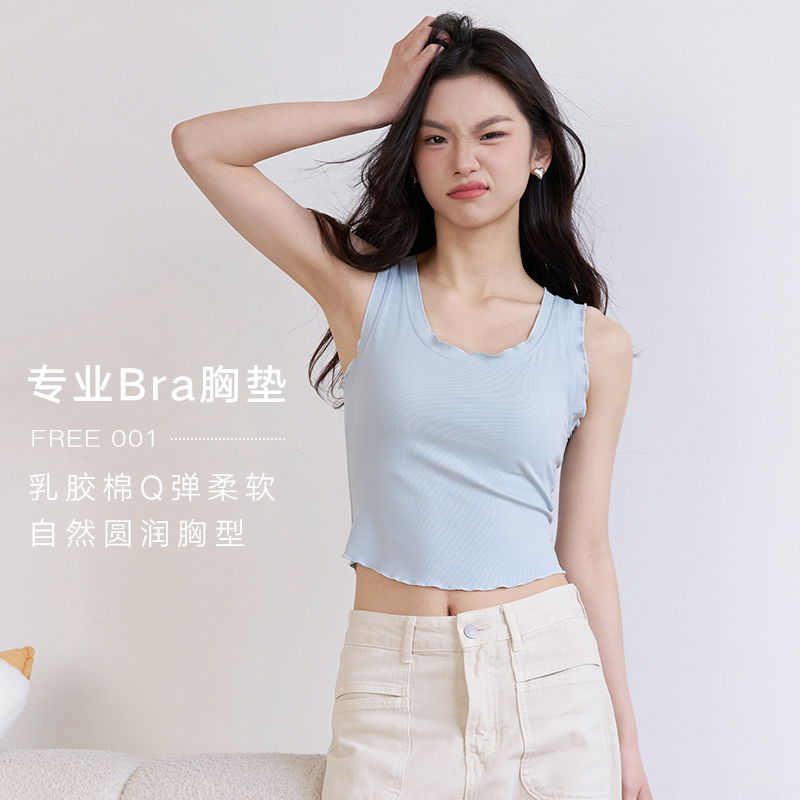 宽肩花边吊带背心女内搭外穿2025新款 带胸垫运动背心上衣甜美辣妹