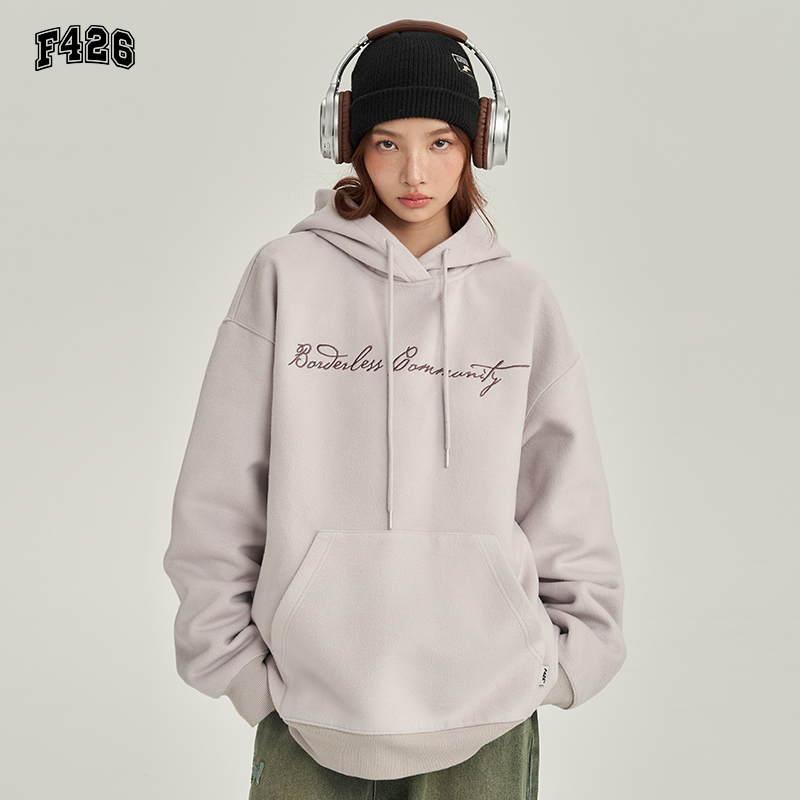 卫衣 国潮牌秋冬情侣街头宽松毛呢花体刺绣连帽衫 F426奥莱店