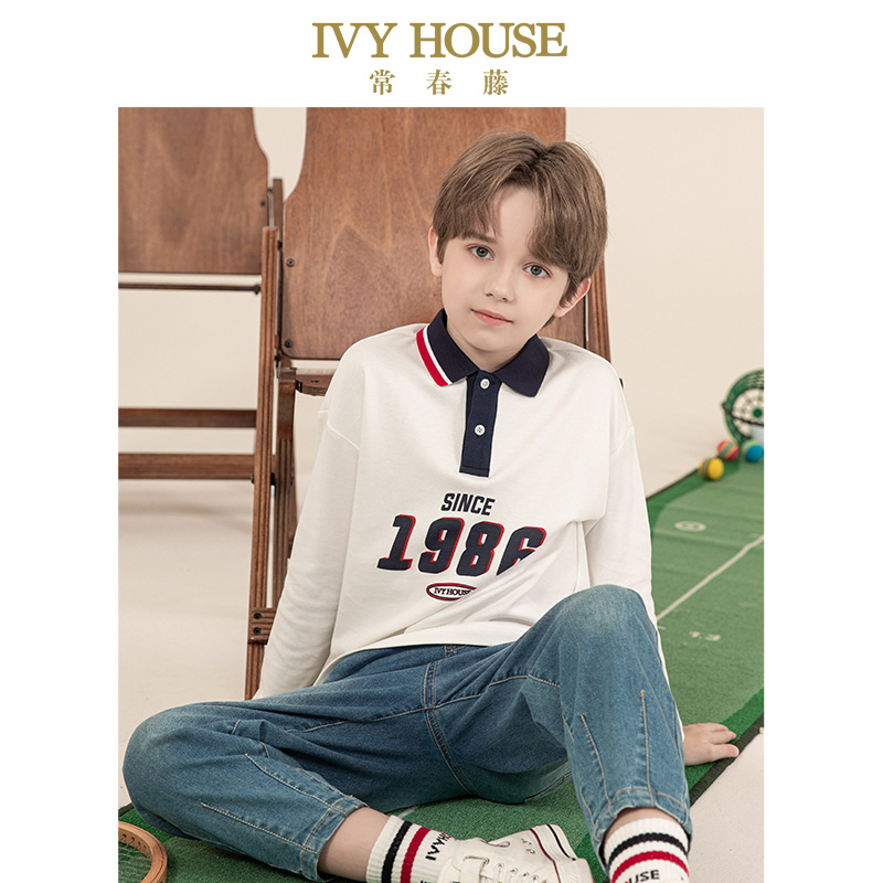 HOUSE常春藤儿童装 针织长袖 男童POLO衫 款 T恤百搭学院 春秋季 IVY