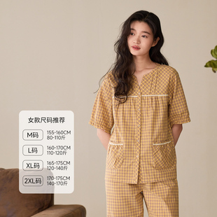 家居服 V领格子显瘦长袖 秋鹿梭织色织格纯棉睡衣女2025春秋季 新款