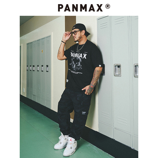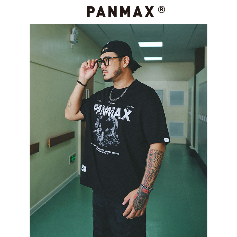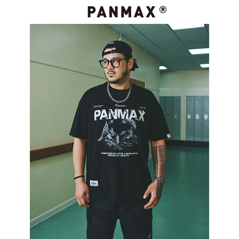 潮流百搭雪山印花黑色短袖 PANMAX潮牌大码 新款 2025夏季 上衣男 男装