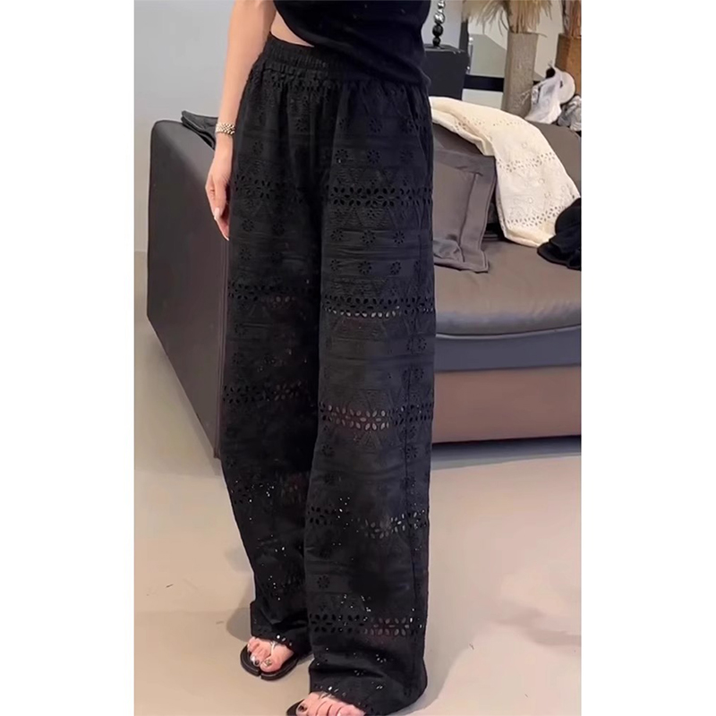 女春秋新款 休闲直筒慵懒松弛感裤 高腰垂感窄版 裤 子 西装 黑色阔腿裤