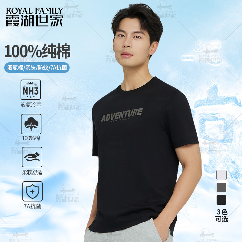 250A 长绒棉5A抗菌双面液氨亲肤圆领短袖 霞湖世男士 印花t恤夏季