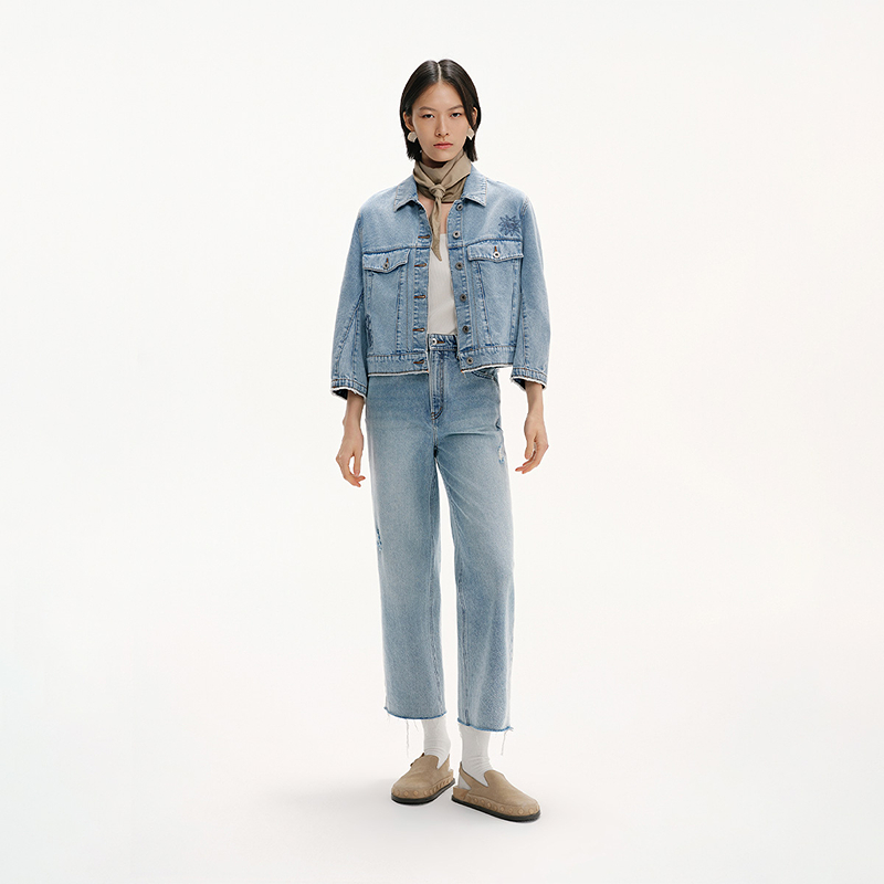 新款 女25夏季 BDS2KD2662 高腰显瘦浅色破洞直筒牛仔裤 播商场同款