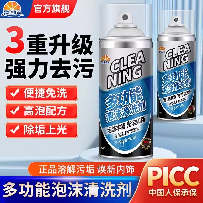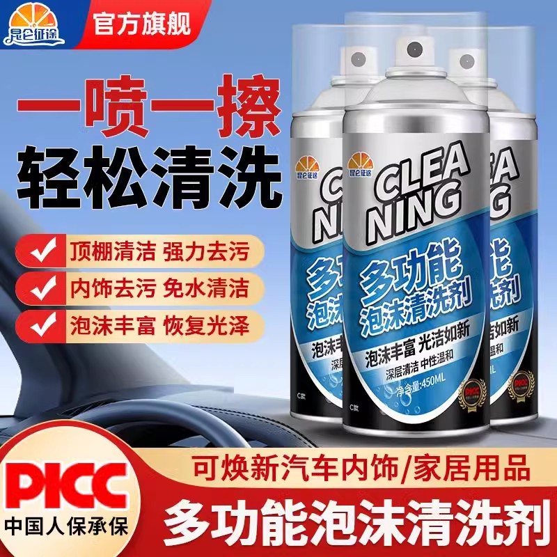 昆仑征途汽车多功能泡沫清洗清洁剂车用顶棚内饰座椅强力玻璃去污